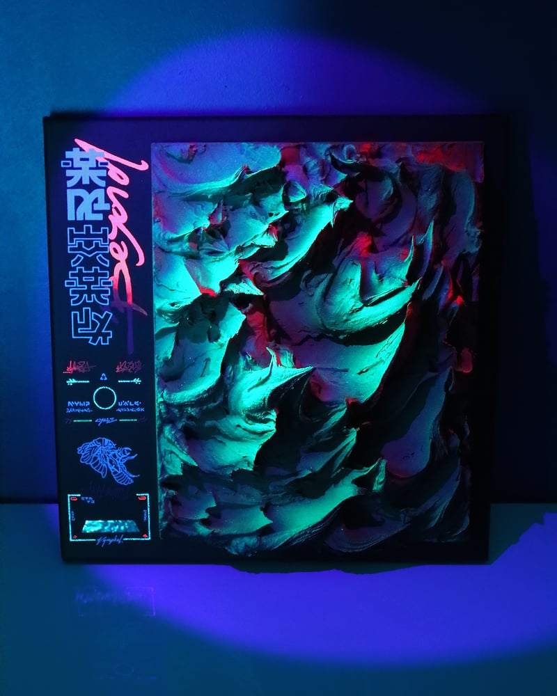 Each painting is a unique hand-made piece which includes special and hidden features (UV fluorescent reactive paint, liquid chrome mirror ink, holographic foil, texture which changes depending on the light source/direction, and much more).
